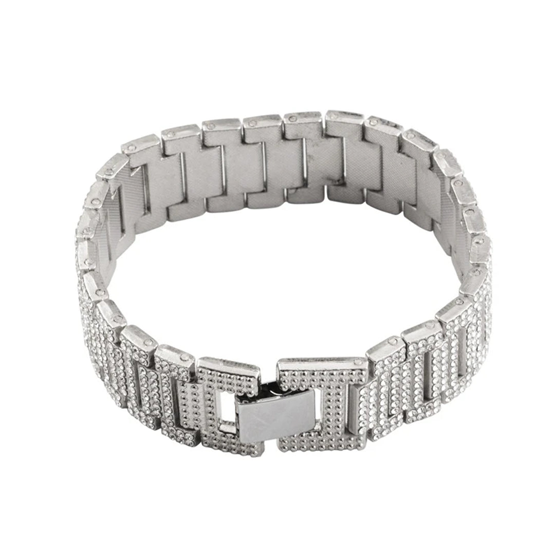 With its exquisite craftsmanship and eye-catching design, the Crystal Iced Out Rhinestone Bracelet is a must-have accessory for those who appreciate timeless beauty and want to make a statement wherever they go. In summary, the Crystal Iced Out Rhinestone Bracelet is a captivating jewelry piece that showcases an abundance of dazzling rhinestones, offering an unparalleled brilliance and sophistication. Whether you wear it as a standalone statement piece or layer it with other bracelets, this bracelet is sure to turn heads and elevate your style to new heights.