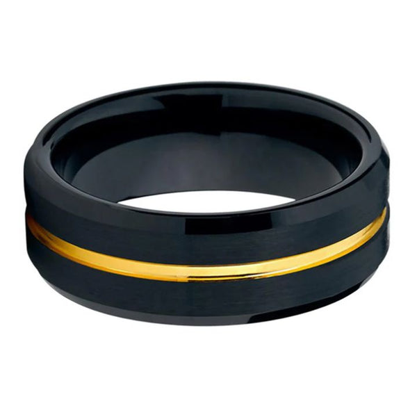 8mm Black Tungsten Carbide Ring with Gold Inlay