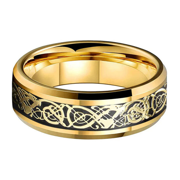 8mm Gold Tungsten Carbide Ring with Celtic Knot Inlay