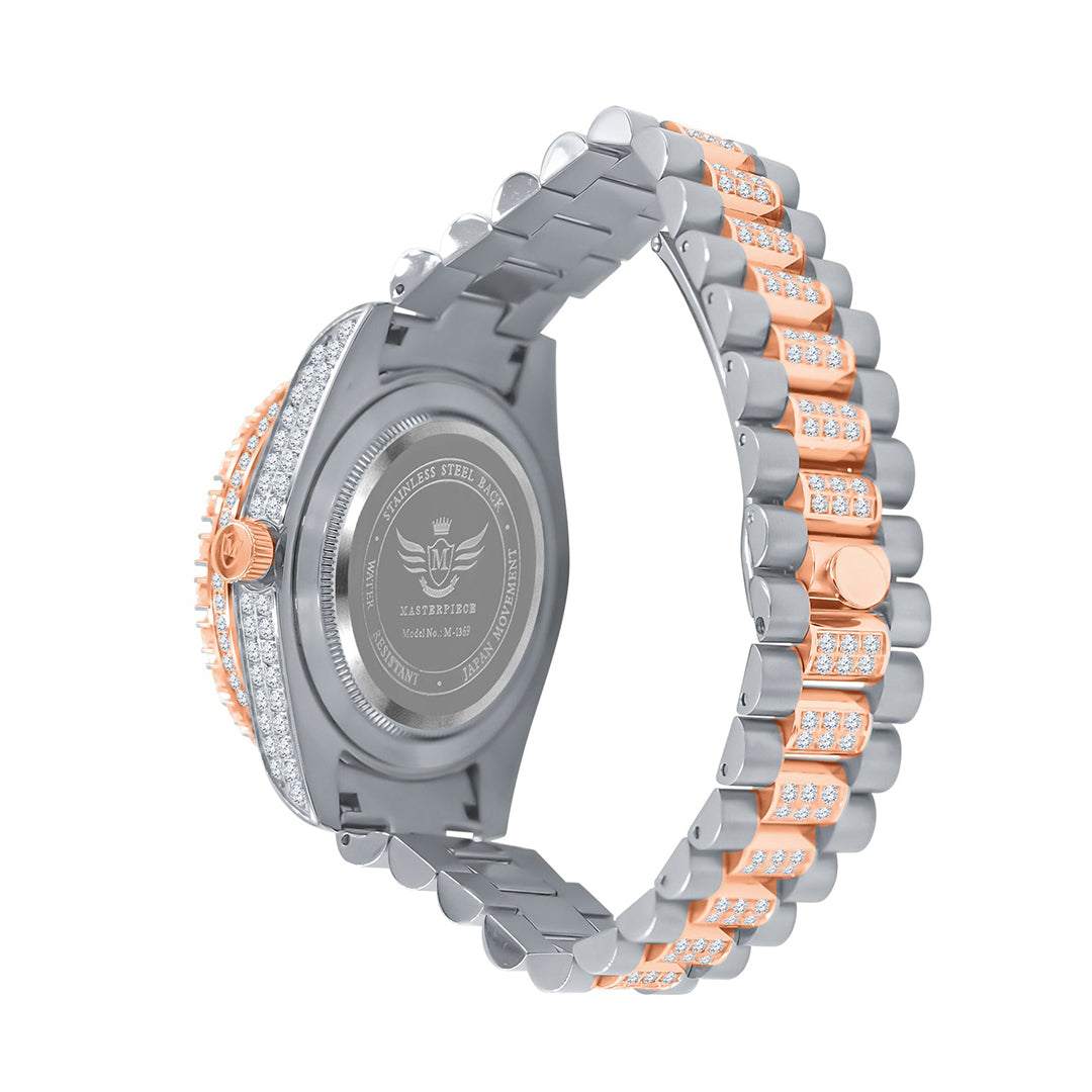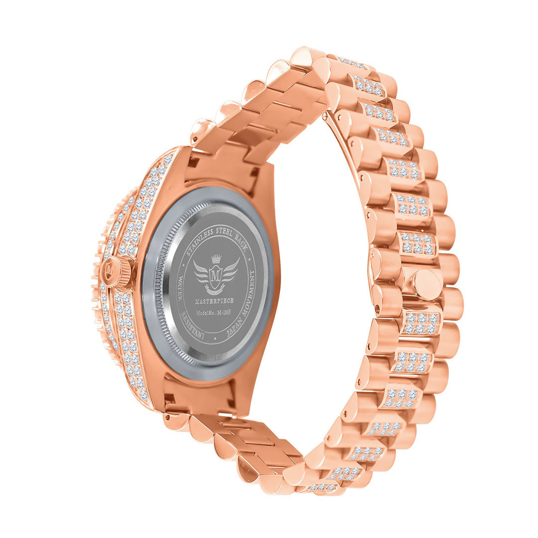 The Gold Iced Out Round Cut Rhinestone Watch is a stunning timepiece that exudes luxury and elegance. With its gold-plated stainless steel case and band, it exudes a rich and opulent aesthetic. The watch face is adorned with round-cut rhinestones, meticulously arranged to create a dazzling display that catches the light from every angle. Its precise quartz movement ensures accurate timekeeping, while the scratch-resistant mineral crystal protects the face from everyday wear.